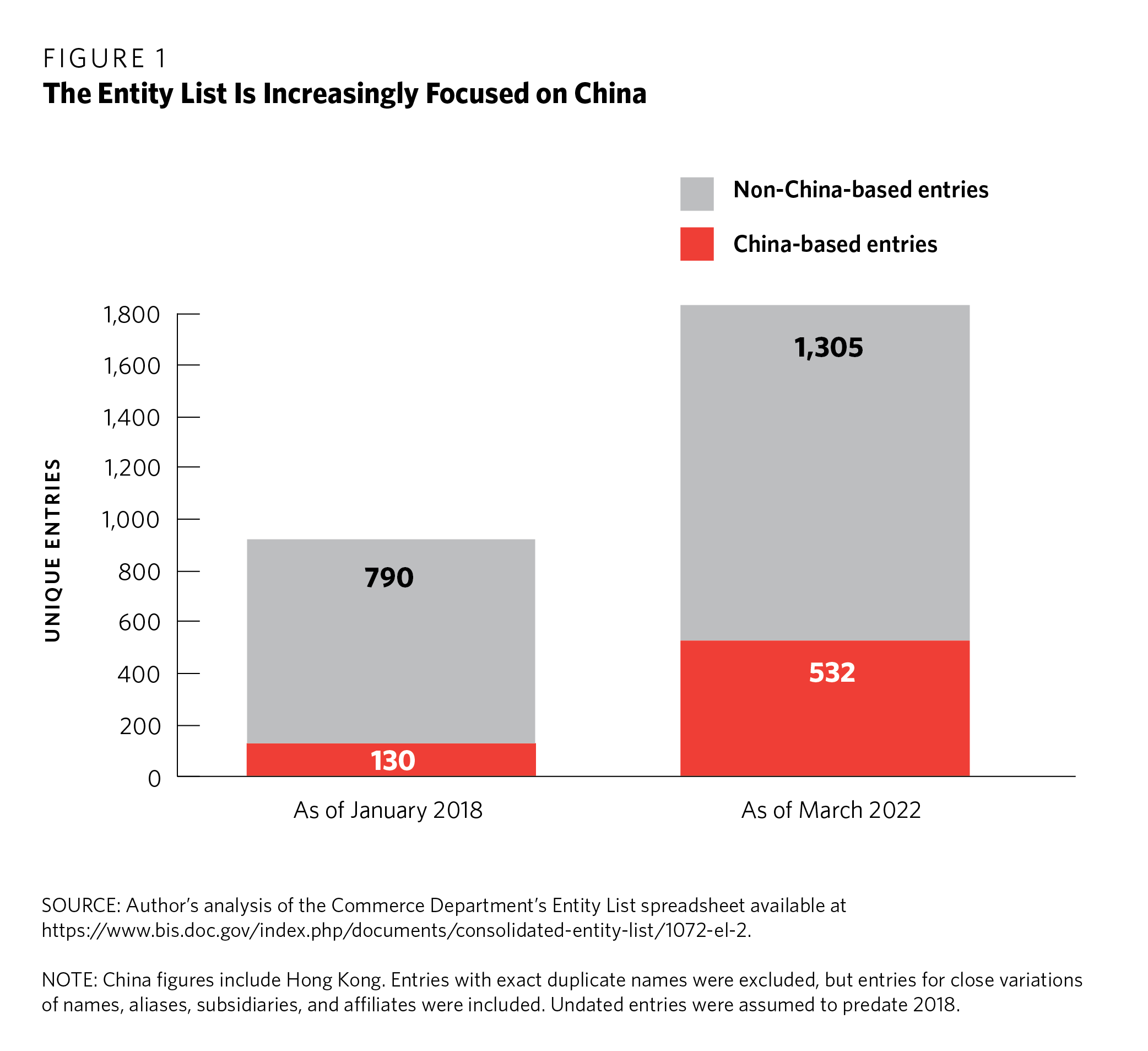 U.S. officials have pointed to several ways that technology controls help combat unfair Chinese practices. First, they can serve as a punishment meant to induce changes in Chinese behavior. When Trump implemented tariffs on large categories of Chinese goods—including tech products like smart devices, flash memory devices, and electronic components—he said he was imposing costs for China’s intellectual property theft and seeking concessions at the bargaining table.4 Second, technology restrictions can aim to counteract the benefits China receives from unfair practices and thus equalize the economic competition, in much the same way that countervailing duties offset foreign subsidies. Commerce Secretary Gina Raimondo once told Congress that the Entity List—which prevents designated Chinese companies from obtaining U.S. technologies, ostensibly for national security reasons—can “level the playing field for the American worker.”5 Finally, technology controls can reduce China’s opportunities to act unfairly. For example, the U.S. government has strongly discouraged American telecoms from using Chinese equipment, in part so that Beijing cannot leverage this equipment to steal U.S. intellectual property.
